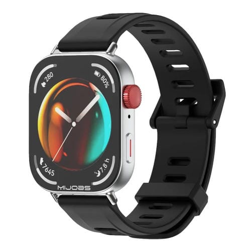 Correa de Silicona con Orificios Planos Mijobs para Huawei Watch Fit3 (Negra y Plateada)