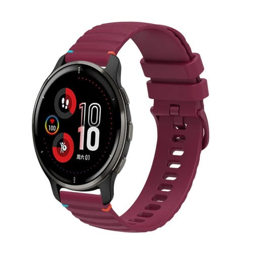 Correa de Silicona para Reloj Garmin Venu 2 Plus 20mm con Puntadas Onduladas y Puntos (Rojo Vino)