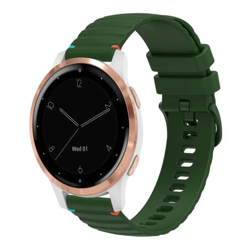 Correa de Silicona Garmin Vivoactive 4S 18mm Puntadas Onduladas (Verde Militar)