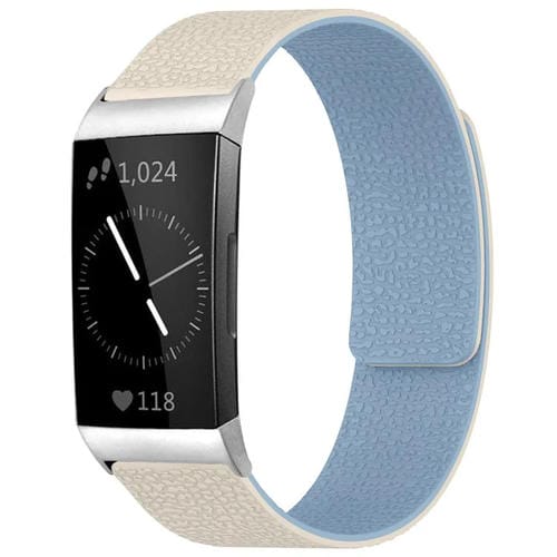 Correa de silicona magnética con textura de lichi para Fitbit Charge 4/Charge 3 xDfind (blanco y azul)