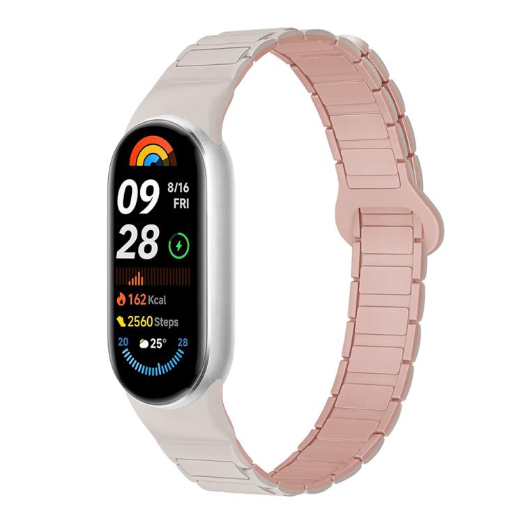 Correa de silicona magnética de tres cuentas para Xiaomi Smart Band 10/9/8 (rosa estrella)
