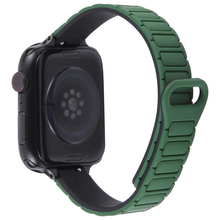 Correa de silicona magnética delgada en forma de I para Apple Watch de 42 mm, 41 mm, 40 mm y 38 mm (negro + verde y negro)