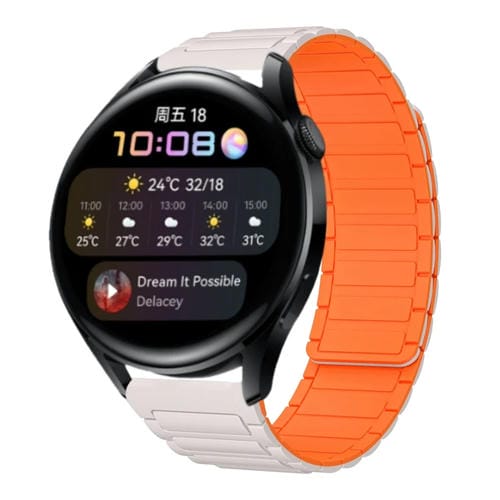 Correa de Silicona Magnética en Forma de I para Huawei Watch 3 22mm (Luz de Estrellas y Naranja)