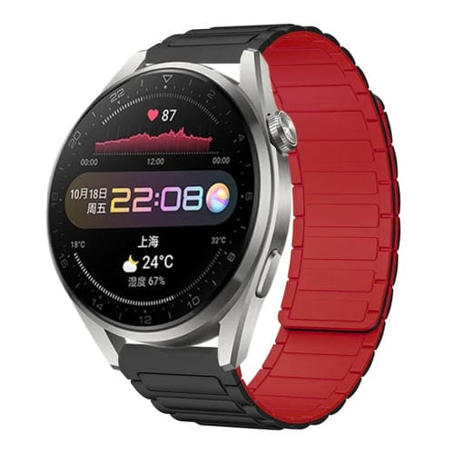 Correa de Silicona Magnética en Forma de I para Huawei Watch 3 Pro 22mm (Negra y Roja)