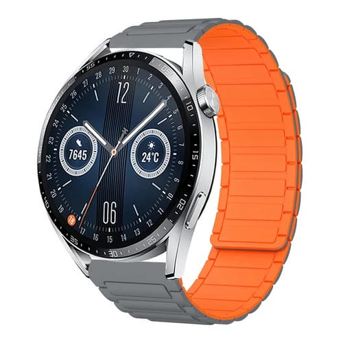 Correa de Silicona Magnética en Forma de I para Huawei Watch GT 3 46mm 22mm (Gris y Naranja)
