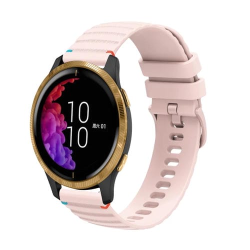 Correa de Silicona para Reloj Garmin Venu 20mm con Puntadas Onduladas y Puntos (Rosa)