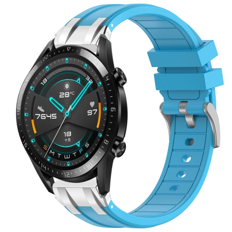 Correa de Silicona para Reloj Huawei Watch Gt2 46mm 22mm con Hebilla Plateada (Azul Cielo)