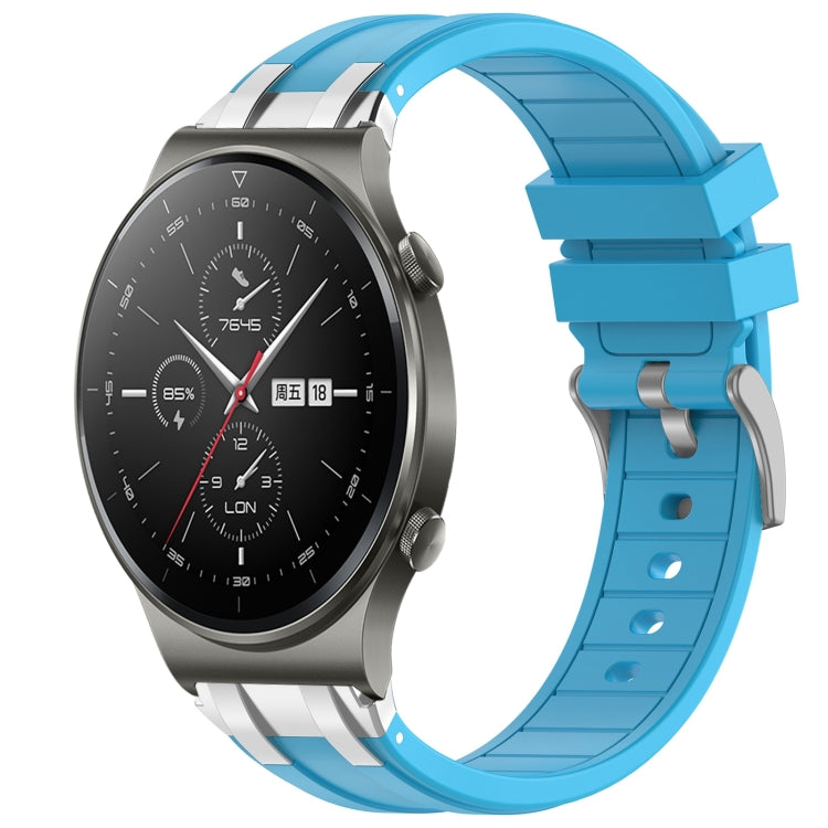 Correa de Silicona Huawei Watch GT2 Pro 22mm Hebilla Plateada Liberación Rápida (Azul Cielo)