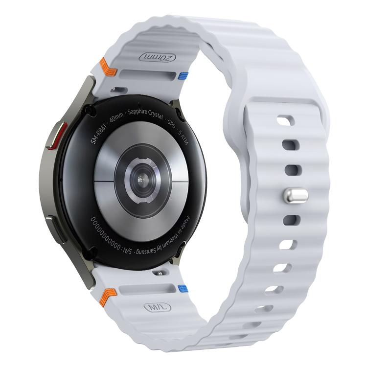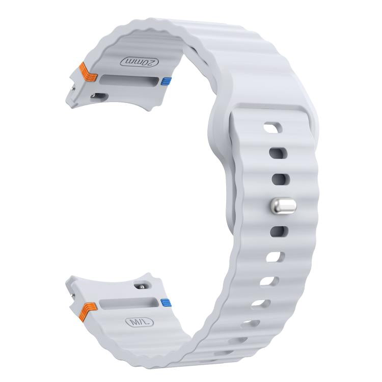 Correa de silicona para Samsung Galaxy Watch 7 (40 mm/44 mm), con costuras onduladas y hebilla invertida de 20 mm (gris claro)