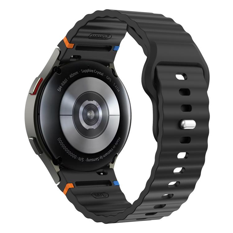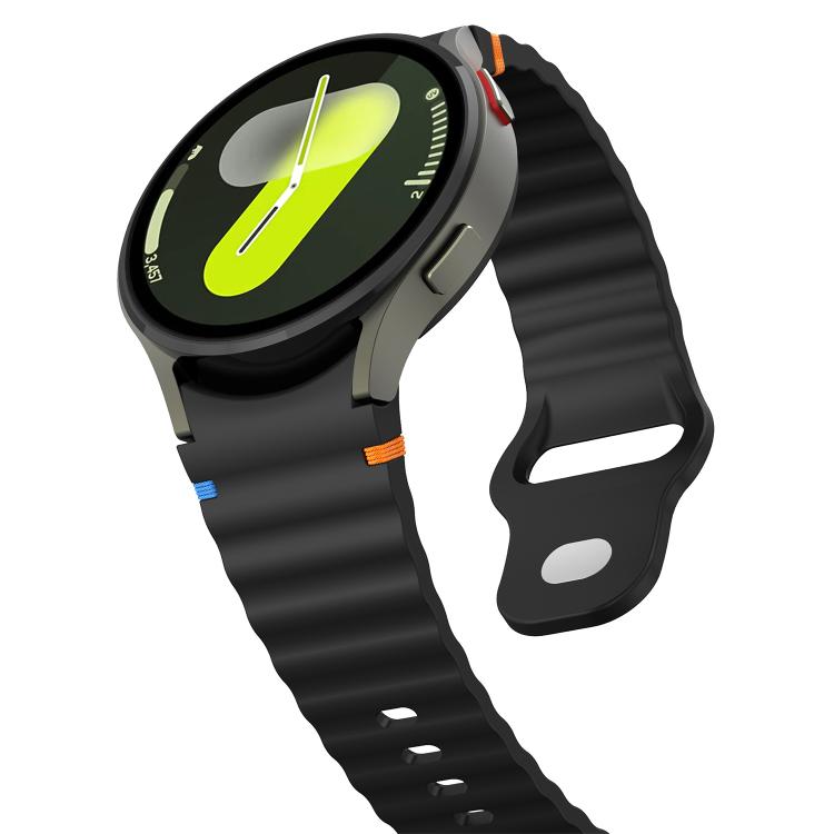 Correa de silicona para Samsung Galaxy Watch 7 (40 mm/44 mm), con costuras onduladas y hebilla invertida de 20 mm (negra)