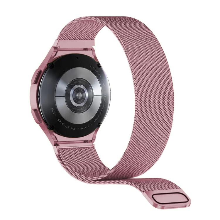 Correa magnética milanesa de acero inoxidable con película curva 3D para Samsung Galaxy Watch6 Classic de 47 mm (oro rosa)