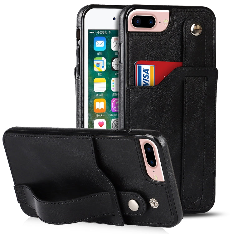 Funda para iPhone 7 Plus 8 Plus Crazy Horse Textura TPU y PU con Ranura y Soporte (Negro)