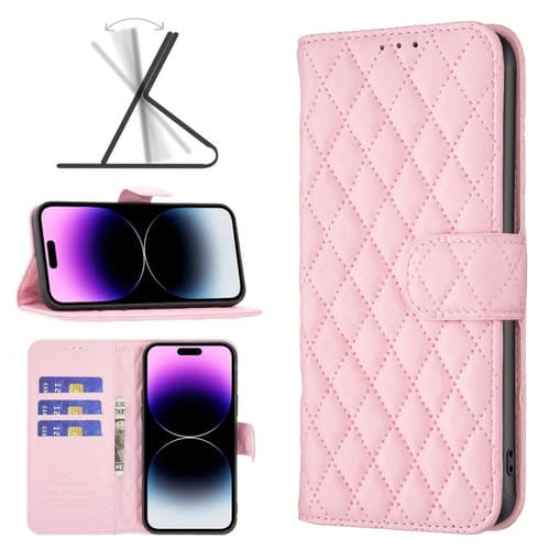 Funda Flip Wallet Diamond Lattice Telephip para iPhone 14 Pro Max (Rosa)