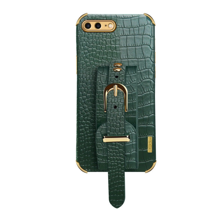 Funda TPU Electroplate con Estampado Cocodrilo y Correa para iPhone 8 Plus / 7 Plus (Verde)