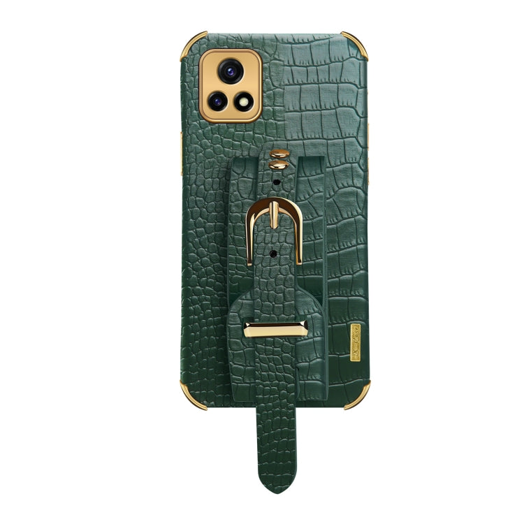 Estuche de Cuero con Patrón de Cocodrilo de TPU Electrochapado con Correa para la Muñeca para Vivo Y52S 5G (Verde)