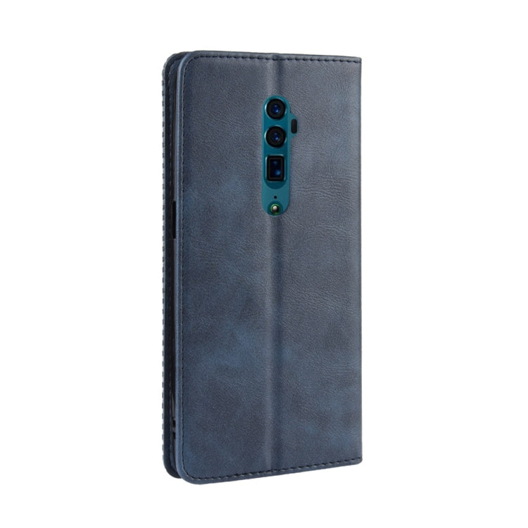 Estuche de Cuero con Tapa Horizontal con Textura de Caballo Loco Retro con Hebilla Magnética para Oppo Reno 10X Zoom / Reno 5G, con Soporte y Ranuras para Tarjetas y Marco de Fotos (Azul)