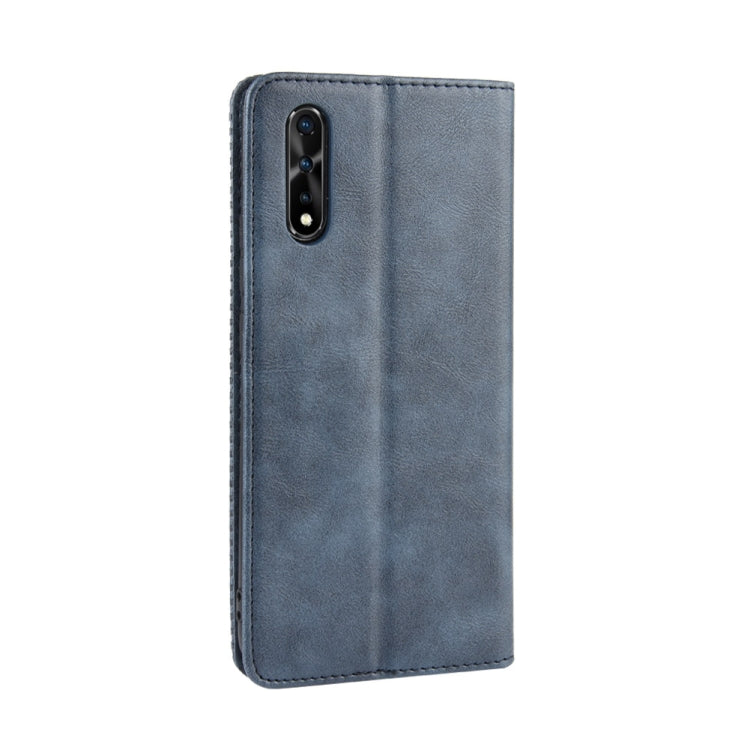 Estuche de Cuero con Tapa Horizontal con Textura de Caballo Loco Retro con Hebilla Magnética para Vivo Iqoo Neo / S1 / Y7S / Z5, con Soporte, Ranuras para Tarjetas y Marco de Fotos (Azul)