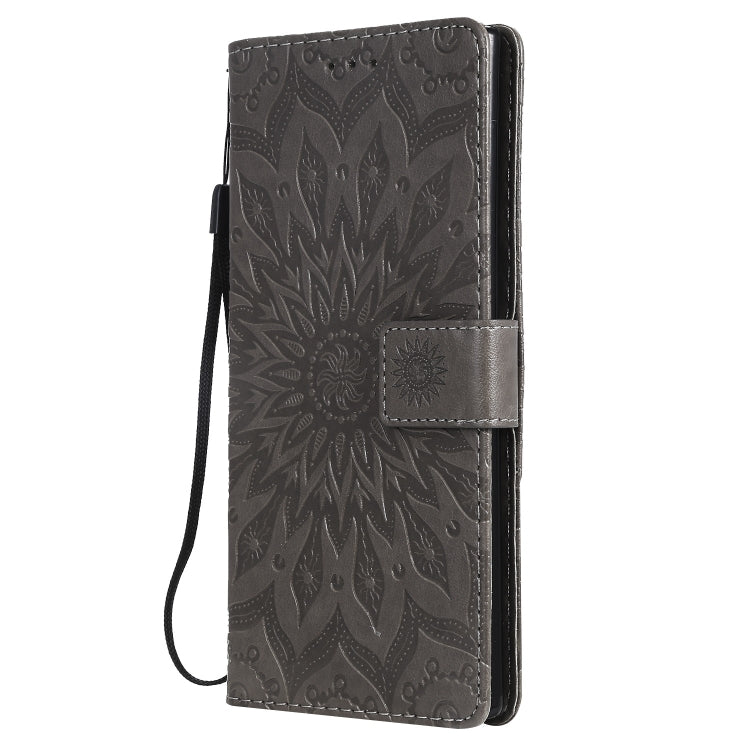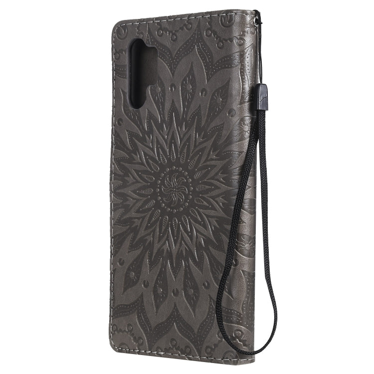 Estuche de Cuero de Pu Galaxy Note 10+ / Note 10 Pro con Diseño de Girasol, Soporte, Ranuras para Tarjetas, Billetera y Cordón (Gris)