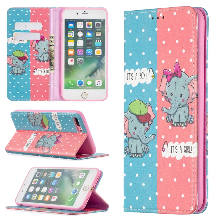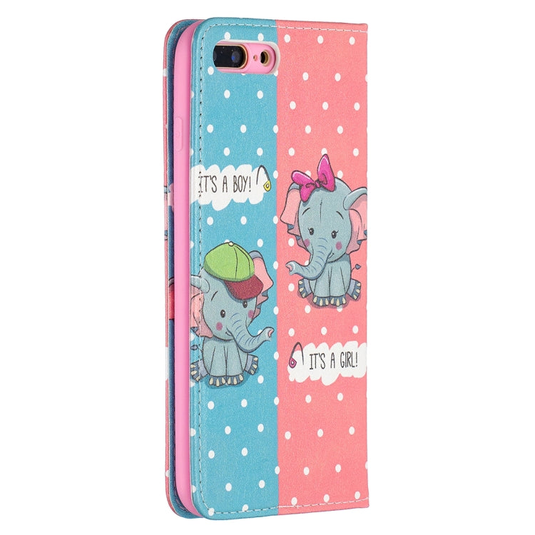 Estuche de Cuero de PU con Tapa Horizontal Magnética Invisible Soporte Ranuras Tarjetas Billetera para iPhone 8 Plus y 7 Plus (Elefante)
