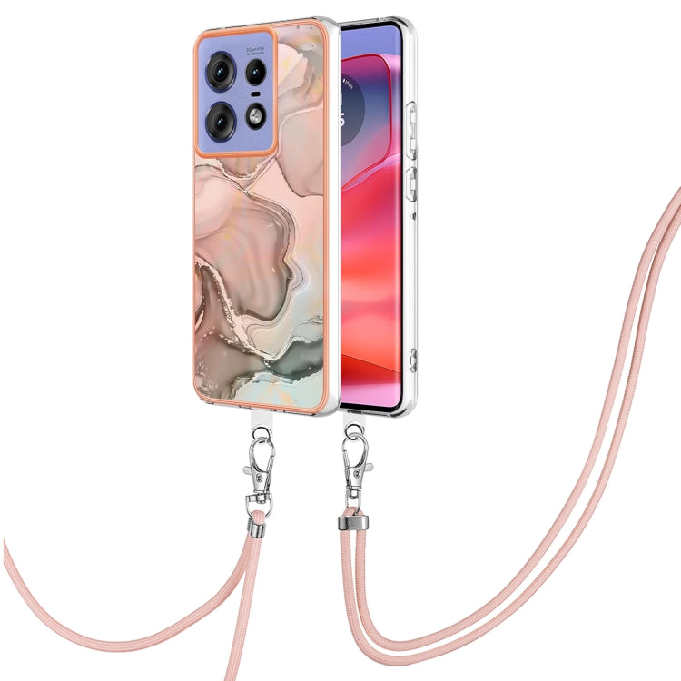 Estuche para Motorola Edge 50 Pro con IMD doble cara y Galvanoplastia Mármol (Oro Rosa) con Cordón