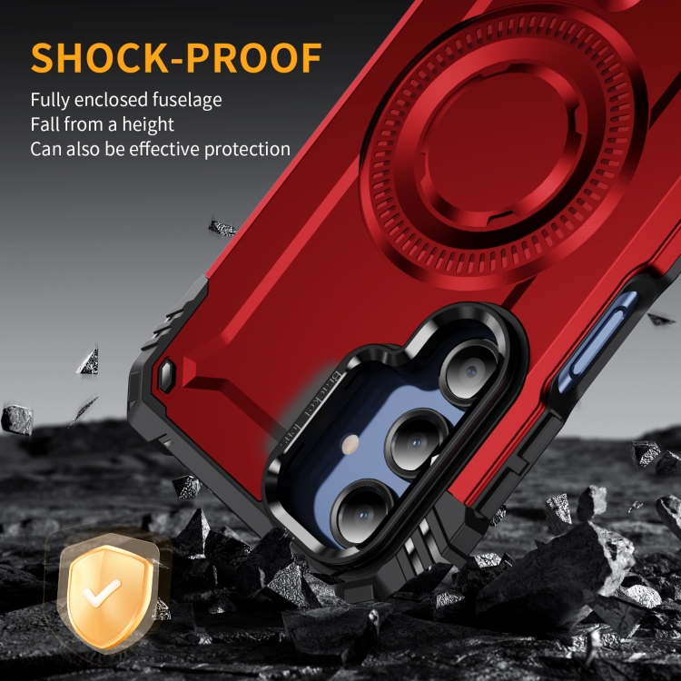 Estuche para teléfono Samsung Galaxy A16 5G con soporte para lente Magsafe (Rojo)