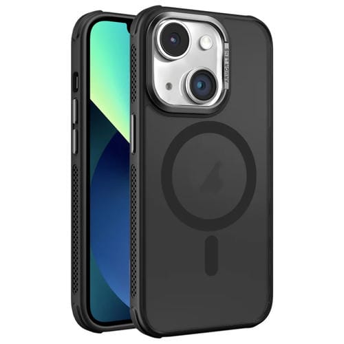 Estuche para teléfono Magsafe iPhone 13 con marco de Lente de metal esmerilado y enfriamiento lateral (Negro)