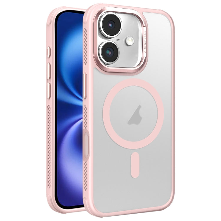 Estuche para teléfono Magsafe con marco de Lente de metal esmerilado y sensación de piel con enfriamiento lateral para iPhone 16 (Rosa)
