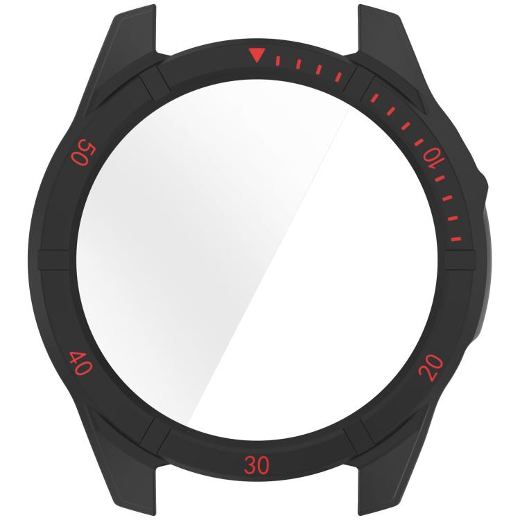 Estuche protector de PC integrado con película templada para Garmin Tactix 8 Solar de 51 mm (negro y rojo)