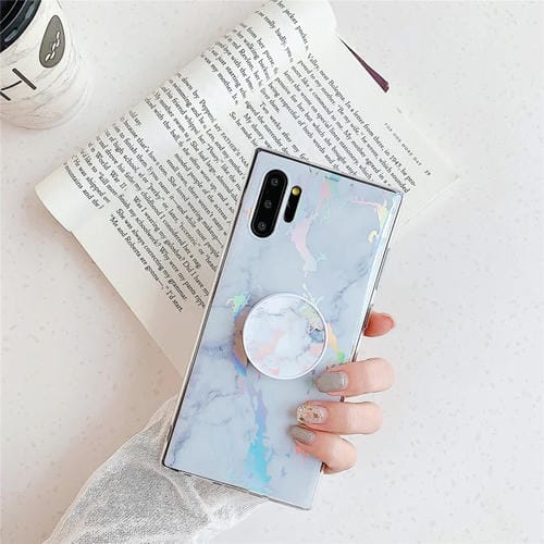 Estuche Protector TPU Galaxy Note10 + Soporte Plegable Mármol (Blanco)