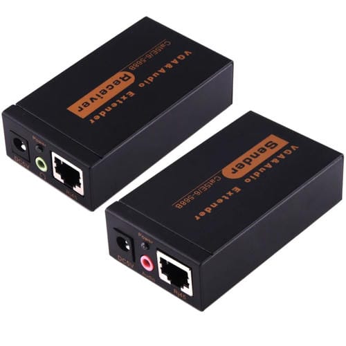Extensor de Audio y VGA 1920x1440 HD 100M Cat5E/6-568B Adaptador Receptor y Remitente (Negro)