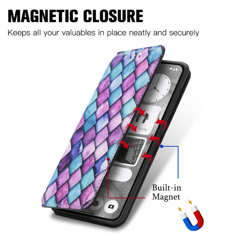 Funda para Nothing Phone 2 Caseneo Colorful de Cuero Magnética (Purple Scales)