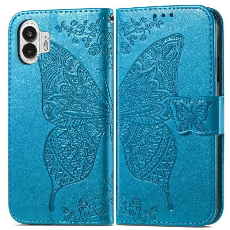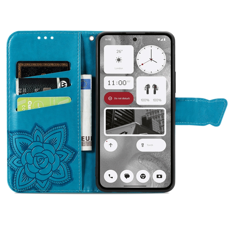 Estuche de Cuero For Nothing Phone 2 con Tapa Horizontal en Relieve Flor de Mariposa (Azul)