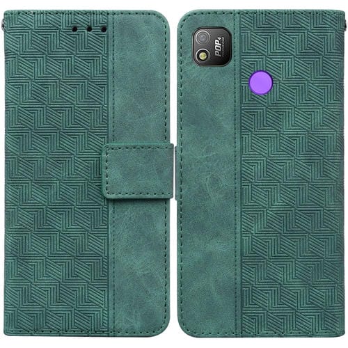Funda para Tecno Pop 4 de Cuero con Relieve Geométrico (Verde)