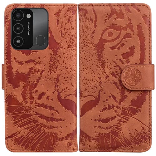 Funda horizontal de cuero para Tecno Spark Go 2022 y Spark 8C con patrón Tiger embossing (Marrón)