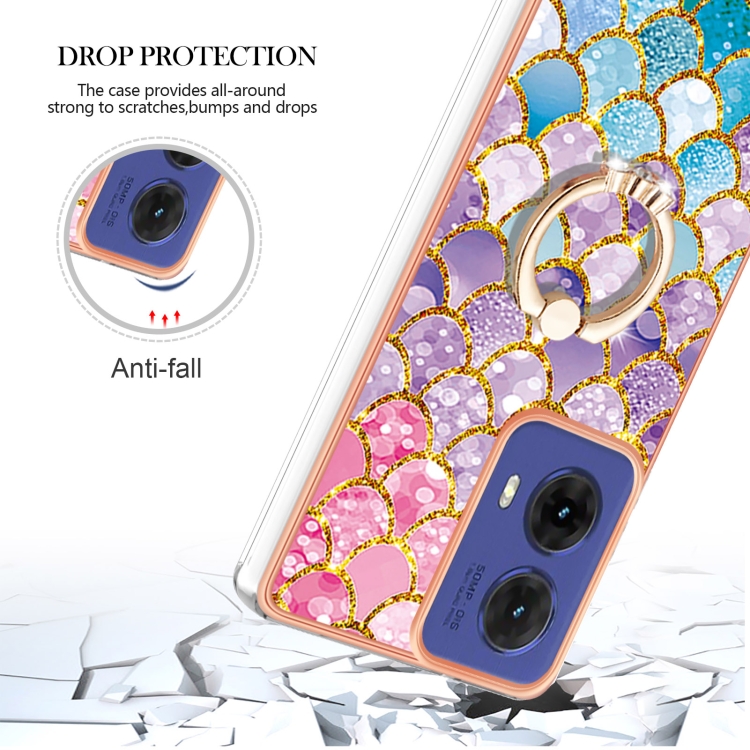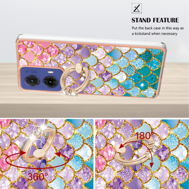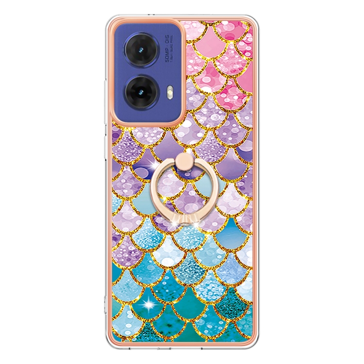 Funda TPU Motorola Moto G85 a Prueba de Golpes con Patrón Galvanoplastia y Soporte de Anillo (Escamas de Colores)