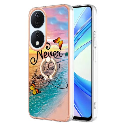 Funda TPU a Prueba de Golpes con Patrón Galvanoplastia y Soporte Anillo para Honor X7B 4G/5G (Mariposa Persiguiendo Sueños)
