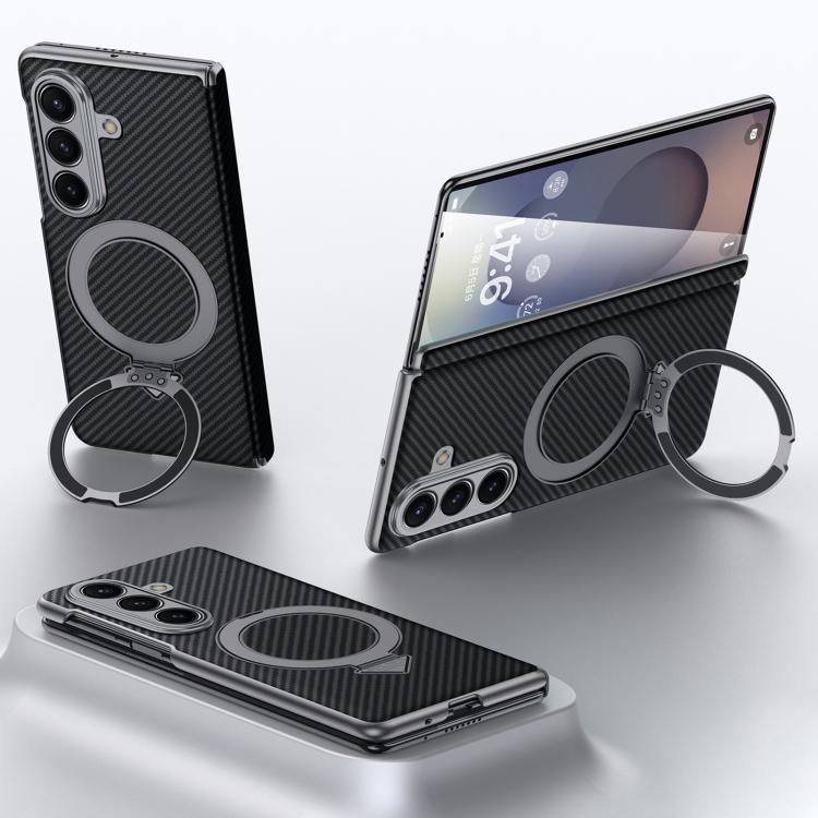 Funda con soporte magnético MagSafe y textura Kevlar SULADA para Samsung Galaxy Z Fold7 5G (negra)