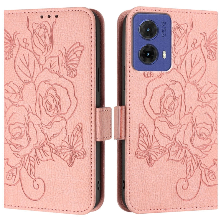 Funda de Cuero Antirrobo con RFID para Motorola Moto G85 5G con Relieve (Rosa)