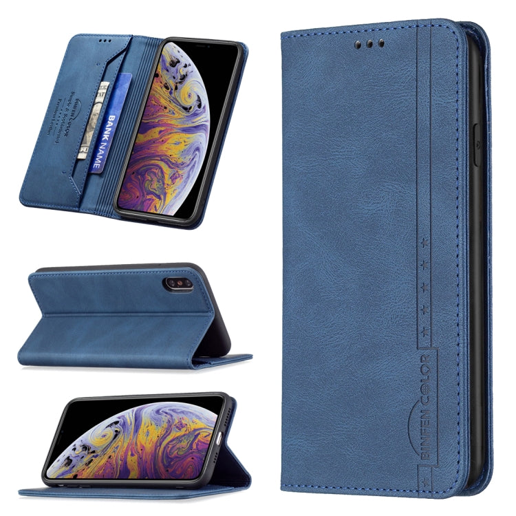 Funda de Cuero Antirrobo Bloqueo Rfid Magnético Soporte Tragamonedas Billetera para iPhone Xs Max (Azul)