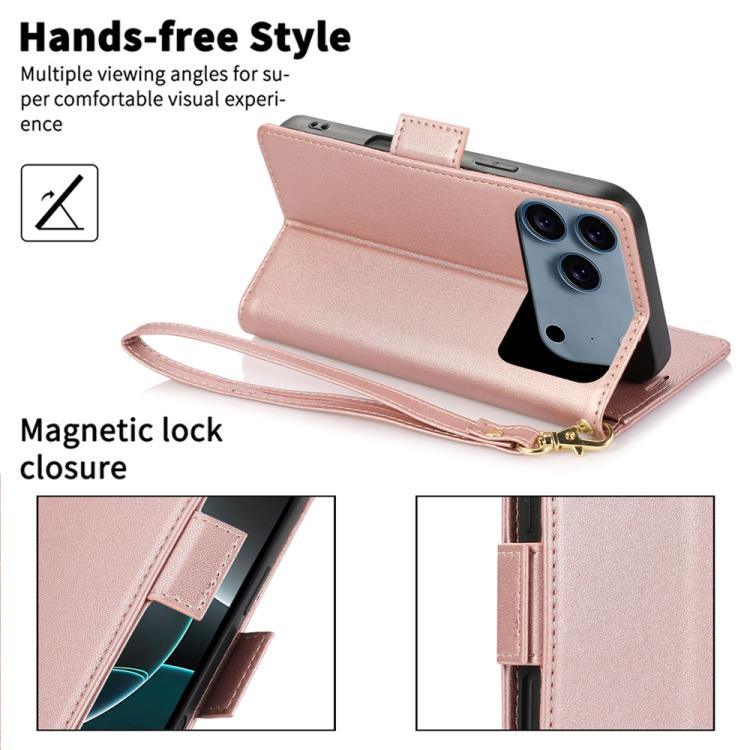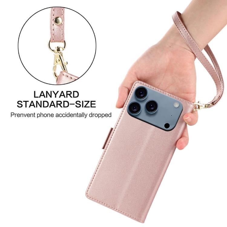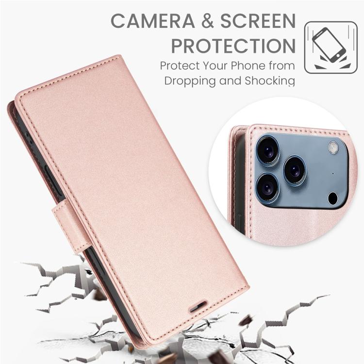 Funda de cuero antirrobo RFID con hebilla lateral para iPhone 17 Pro (oro rosa)