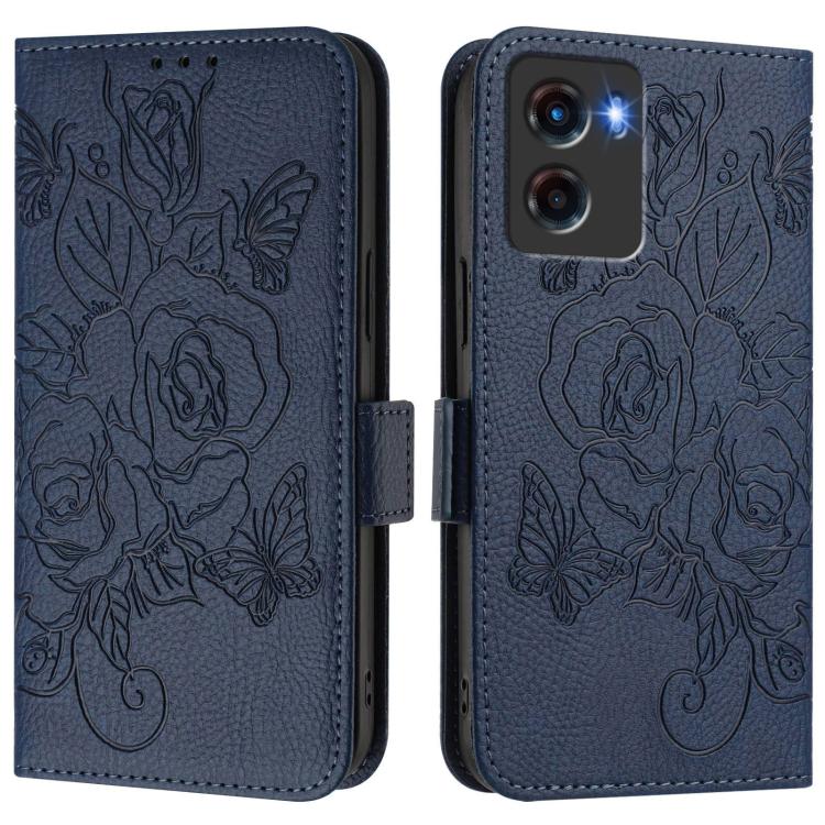 Funda de Cuero Antirrobo Rfid con Relieve para Motorola Moto G05 (Azul Oscuro)