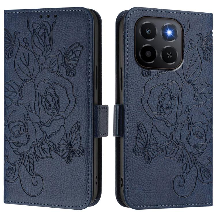 Funda de cuero antirrobo RFID con relieve rosa para Honor X6c 4G (azul oscuro)