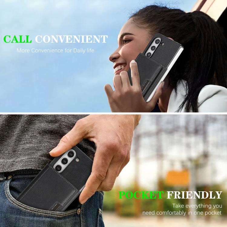 Funda de cuero con adhesivo lateral para Samsung Galaxy Z Fold5, con cierre magnético MagSafe, triple pliegue, Kalebol (negro)