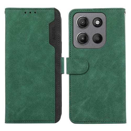 Funda de Cuero con Bloqueo Magnético RFID para Motorola Moto G15 4G/G05 Abeel (Verde-Negro)