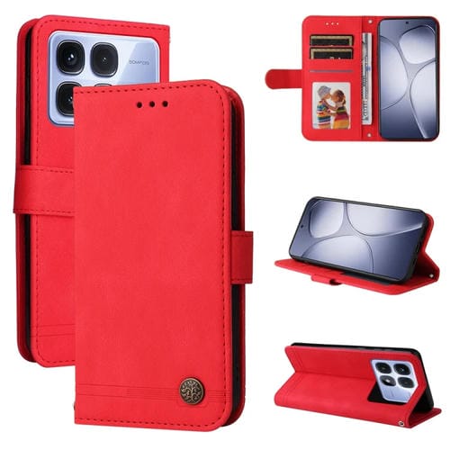 Funda de Cuero con Botones de Metal y Diseño de Árbol de la Vida para Redmi K70 Ultra (Rojo)