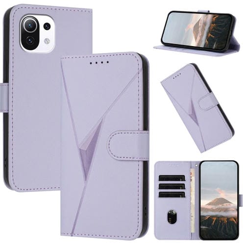 Funda de Cuero con Hebilla y Diseño Triangular para Xiaomi Mi 11 Lite (Morado Claro)