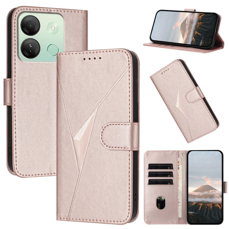Funda de Cuero con Cierre de Hebilla y Diseño Triangular para Infinix Smart 7 HD (Oro Rosa)