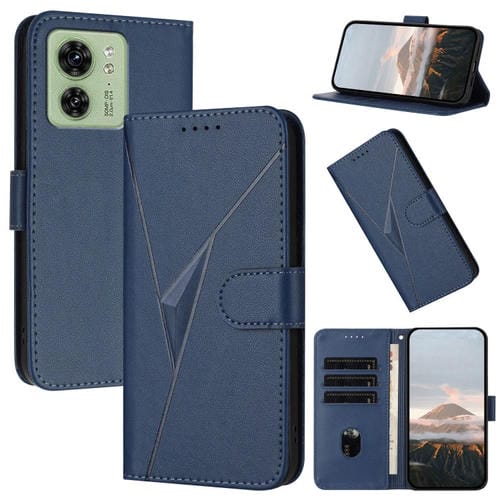 Funda de Cuero con Cierre de Hebilla y Diseño Triangular para Motorola Edge 40 (Azul Real)
