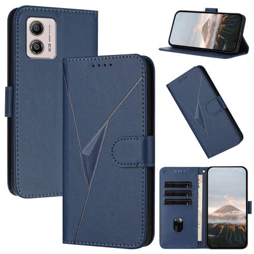 Funda de Cuero para Motorola Moto G53 con Cierre de Hebilla y Diseño Triangular (Azul Real)