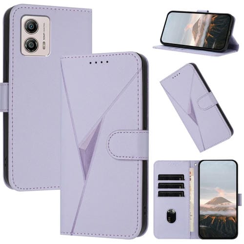 Funda de Cuero Motorola Moto G53 con Cierre de Hebilla y Diseño Triangular (Morado Claro)